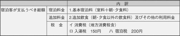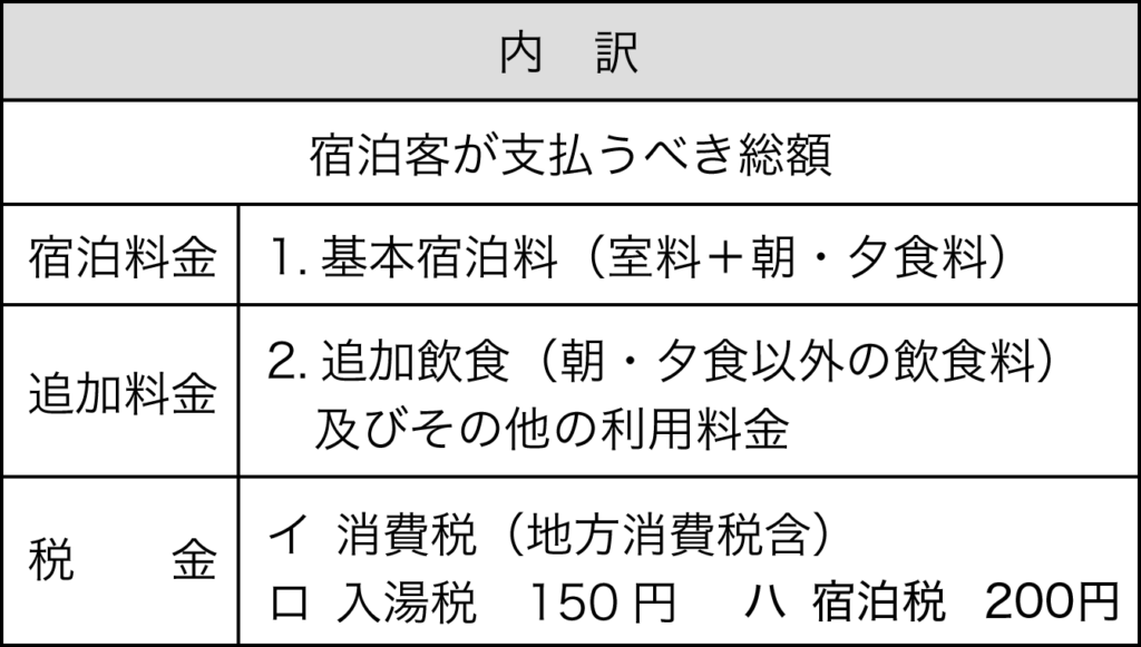 第12条 宿泊客が支払うべき宿泊料金等の内訳は、別表第1に掲げるところによります。